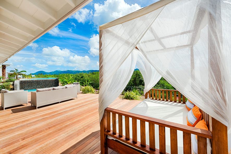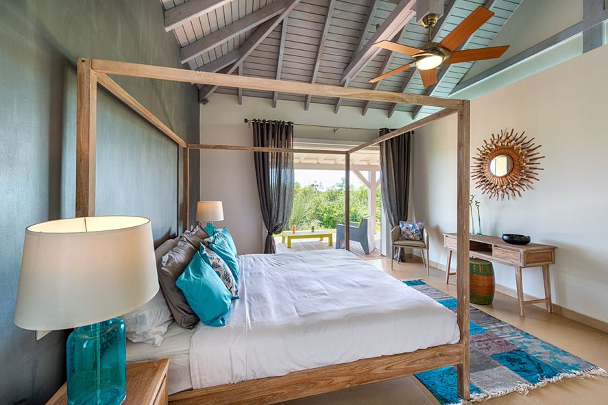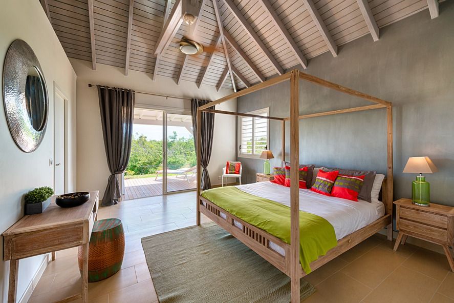 Two have private terraces. Spacious and serene, each room's decor blends a neutral palette with vibrant colors and accessories. The furniture has a rustic and tropical touch.
