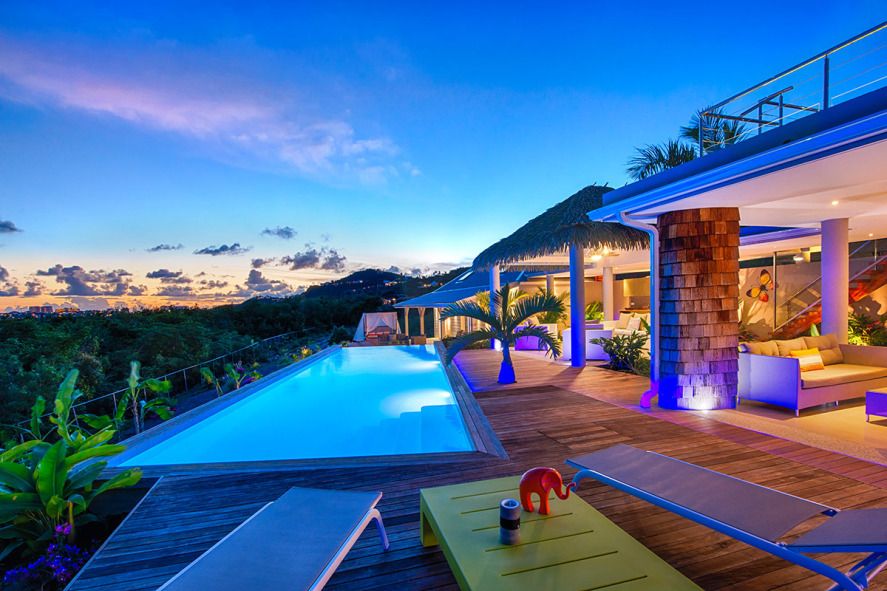 The enormous fiber-optic pool on the main floor impresses with ever-changing colors at night.