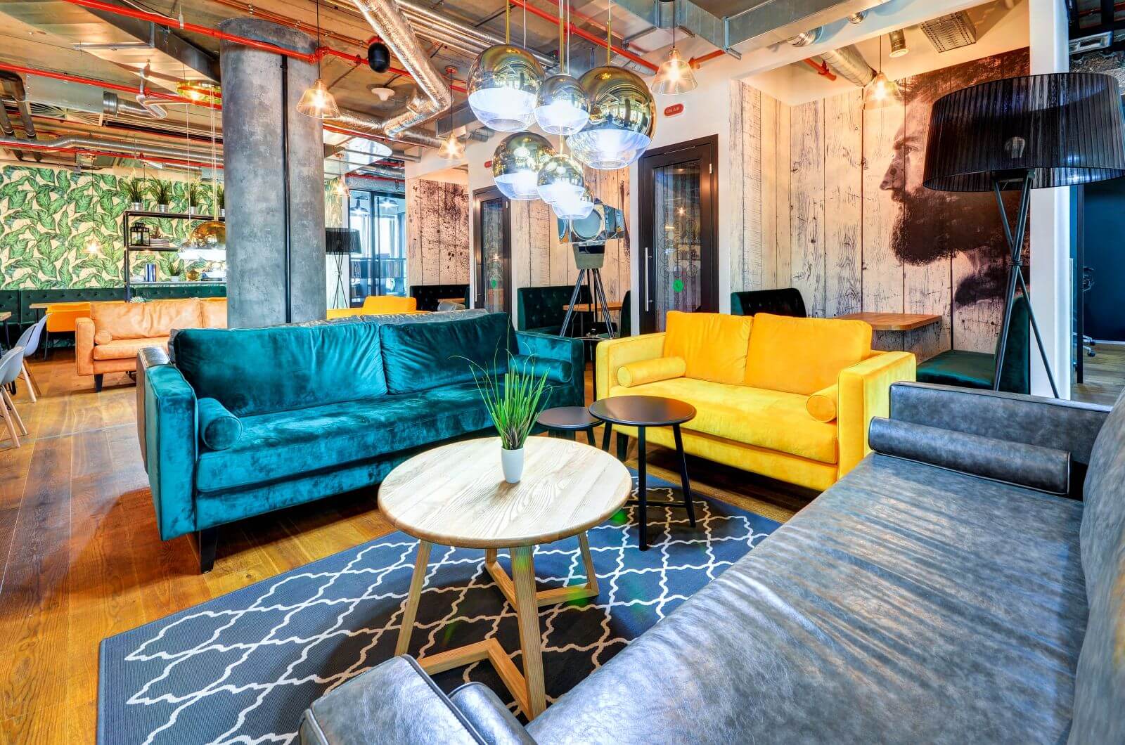 Comfortable designer furniture, bright colors, combined with leather, wood, and metal elements, as well as a variety of textures like bricks or concrete, are the stars of all WorkLounge projects.