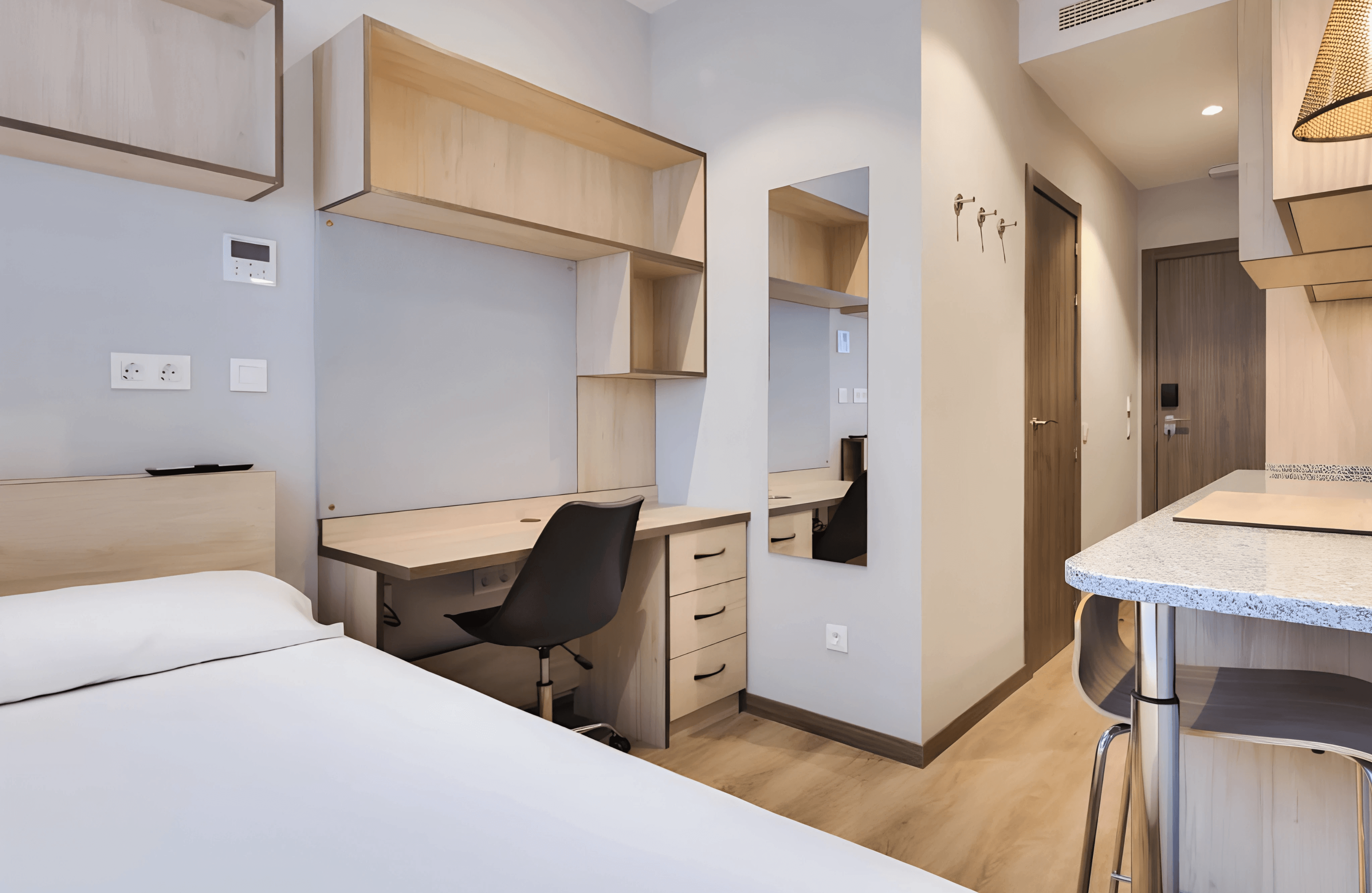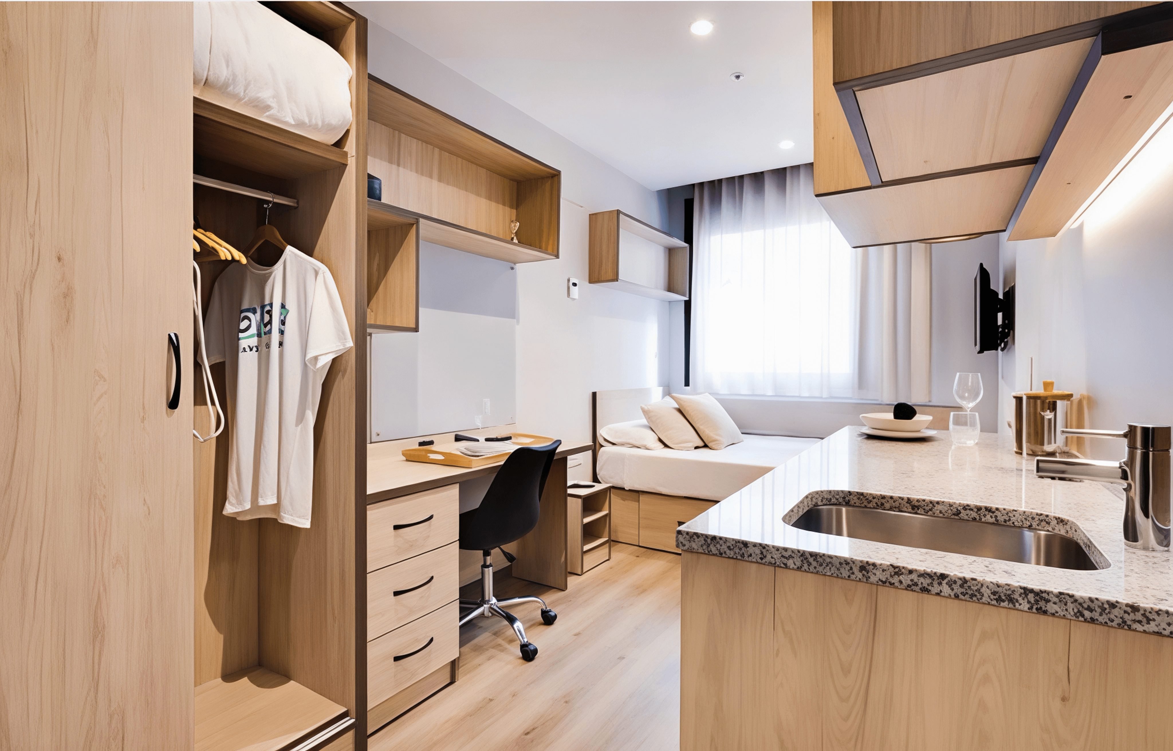 The concept merges move-in-ready studios with extensive communal areas — from lounges and co-working spaces to gaming rooms, gyms, cinema zones, and outdoor BBQ gardens. Every detail was designed to support international student life: functional layouts, durable materials, and social environments that encourage interaction. With all-inclusive rent and prime metro-connected locations, Bro-coli delivers a simplified and socially engaging urban student living experience.